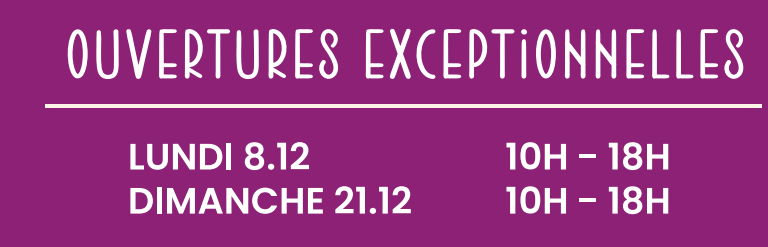 Lundi 8 décembre & dimanche 21 décembre : 10h à 18h